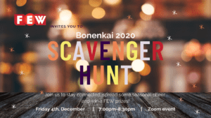 December 4th @ 7:00 PM – 8:30 PM (JST) FEW Japan will finish the year 2020 by holding its annual Bonenkai. This year promises to be just as fun…