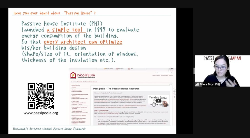 Having historical family roots in architecture and engineering with companies such as Nissan, Mori-san talked about her experience of pursuing a graduate studies in architecture and urban design at the University of Stuttgart through a German Scholarship. Miwa worked in Europe for the first ten years of her career, first in Germany before moving to Ireland. It was during this time when she met and was influenced by Dr. Wolfgang Feist, the German physicist and inventor of the Passive House. The whole concept began with the questioning of the use of central heating systems and air-conditioning units and whether the use of these can be entirely eliminated.
