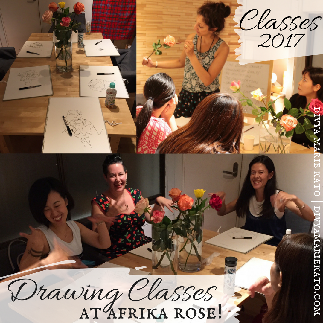 That’s why this photo has me smiling a mile wide. I’ve started a group drawing class in Tokyo – meet the beautiful Afrika Rose Drawing Family 2016!